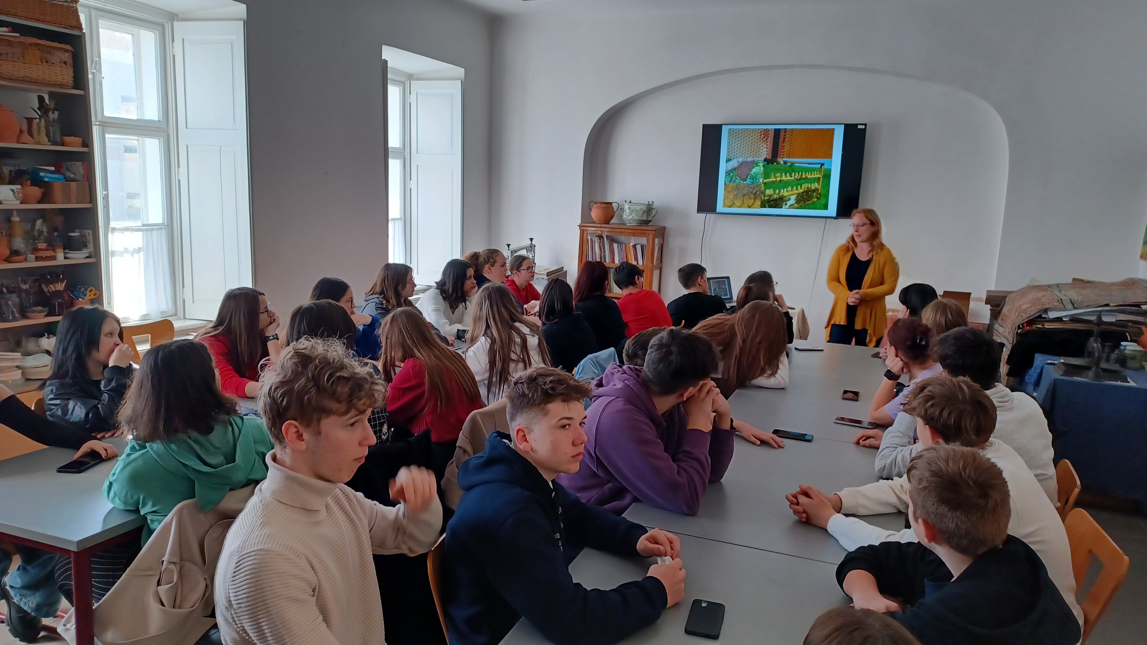 Szerda délután hosszú tavaszi napsütéses séta után az Egri Vár kézműves műhelyében egy régi egri mesterséggel ismerkedhettek meg a diákok.