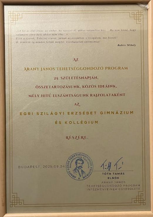 Elismerések a Szilágyinak az Arany János Tehetséggondozó Program országos jubileumi ünnepségén