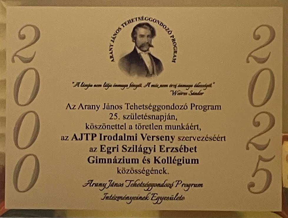 Díjazták a program legrangosabb, legnépszerűbb országos rendezvényeit, versenyeit is. Büszkék vagyunk rá és örömünkre szolgál, hogy ezek sorában elismerő plakettet kapott az intézményünk által már több évtizede évről évre megrendezett AJTP országos irodalmi verseny.