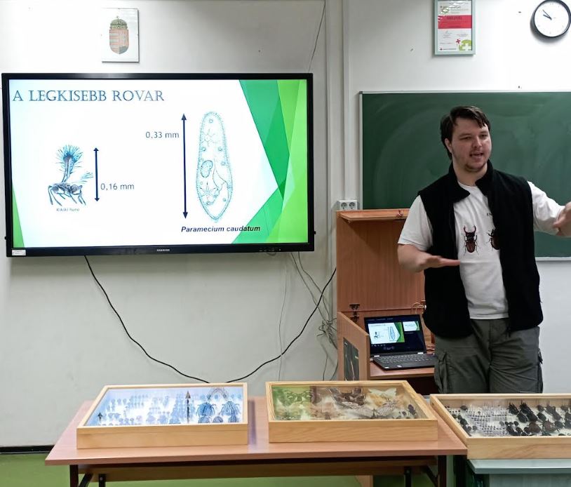 „Érdekességek és tévhitek a rovarokról” címmel tartott színvonalas előadást Bernát Máté, volt szilágyis diák a 9. évfolyamos biológia-kémia tagozatos osztályunknak. Máté jelenleg a Debreceni Egyetem harmadéves biológus szakos hallgatója, az entomológia a fő érdeklődési és kutatási területe. Rendszeres előadó országos rovartani konferenciákon és mindig szívesen jön vissza volt iskolájába megosztani ismereteit a jelenlegi diákjainkkal. Előadását saját rovargyűjteményéből összeállított bemutatóval színesítette.