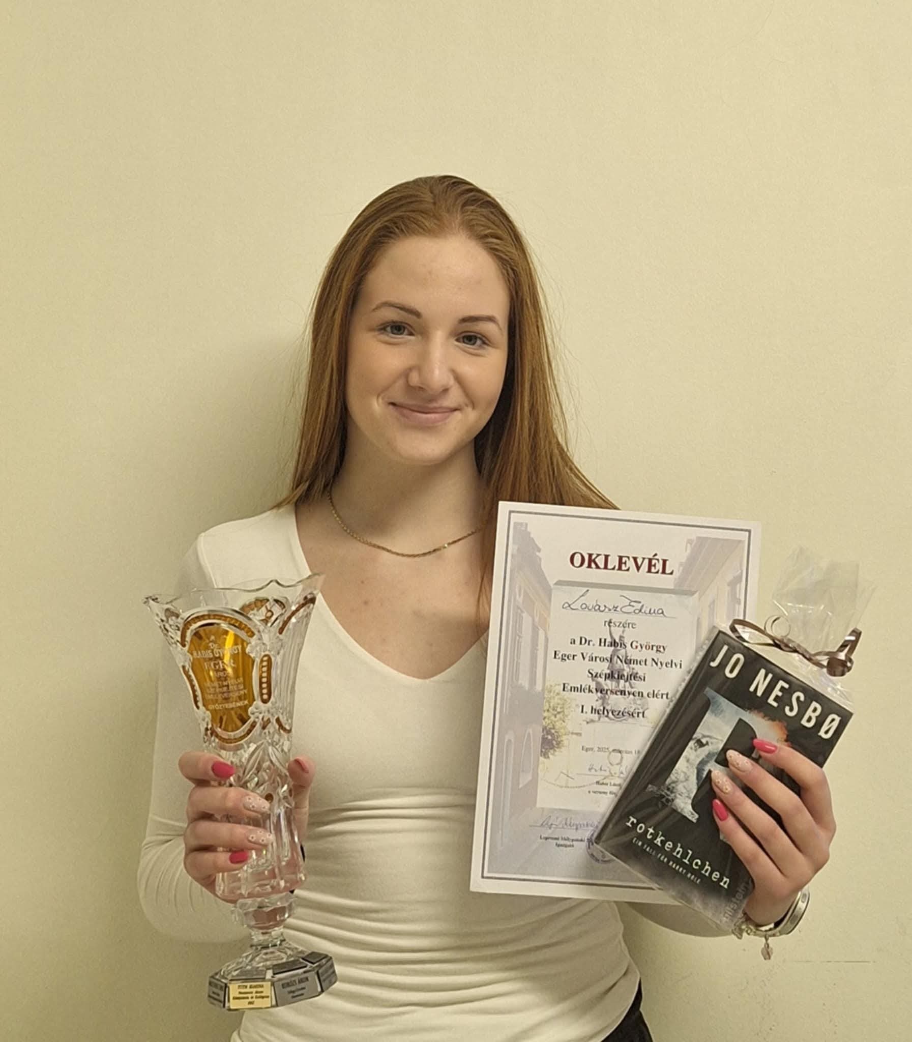 - 2025-ben a Dr. Habis György Eger Városi Német Nyelvi Szépkiejtési Emlékversenyen diákjaink az első és a negyedik helyet, valamint a vándorserleget hozták el.