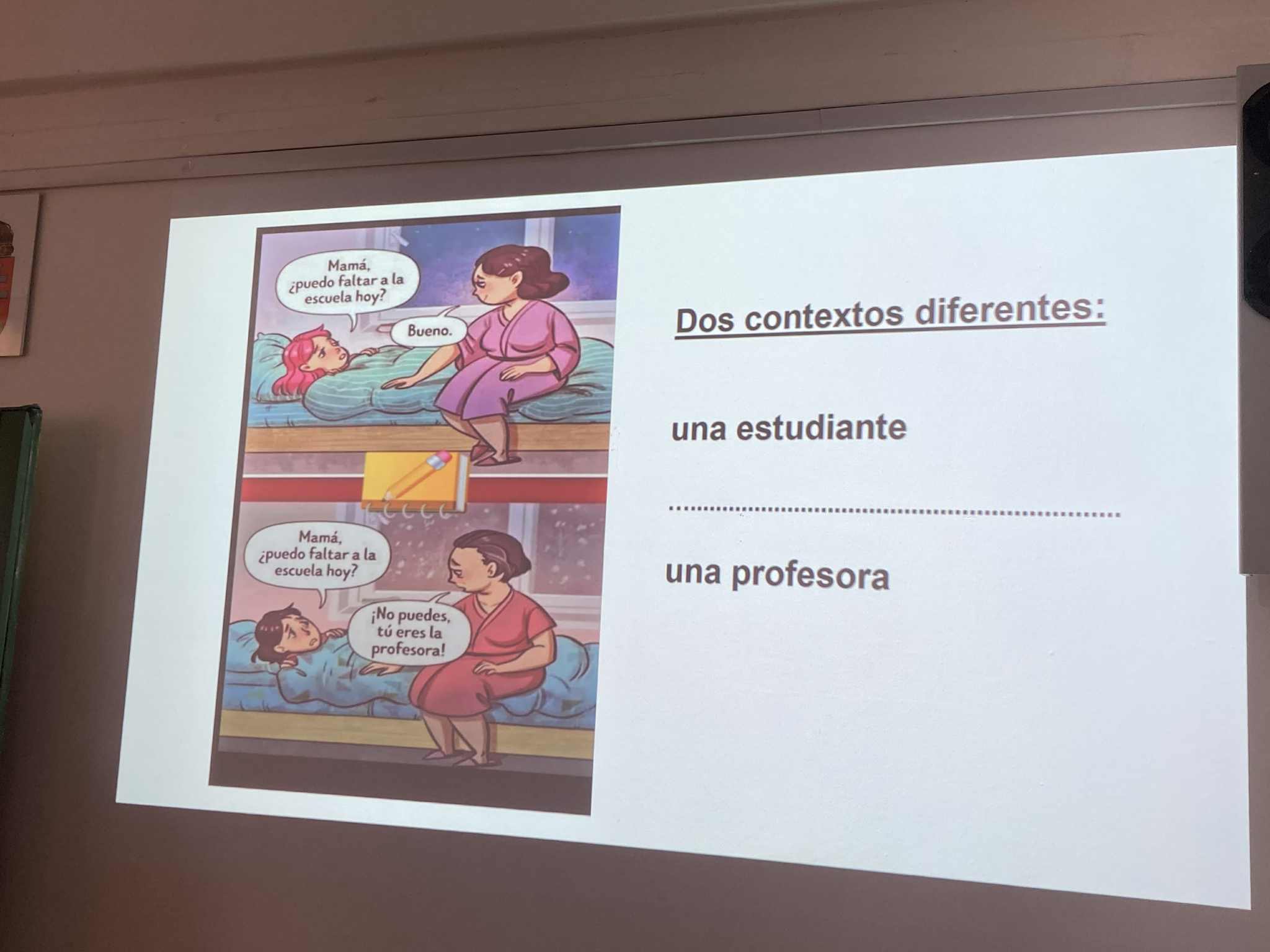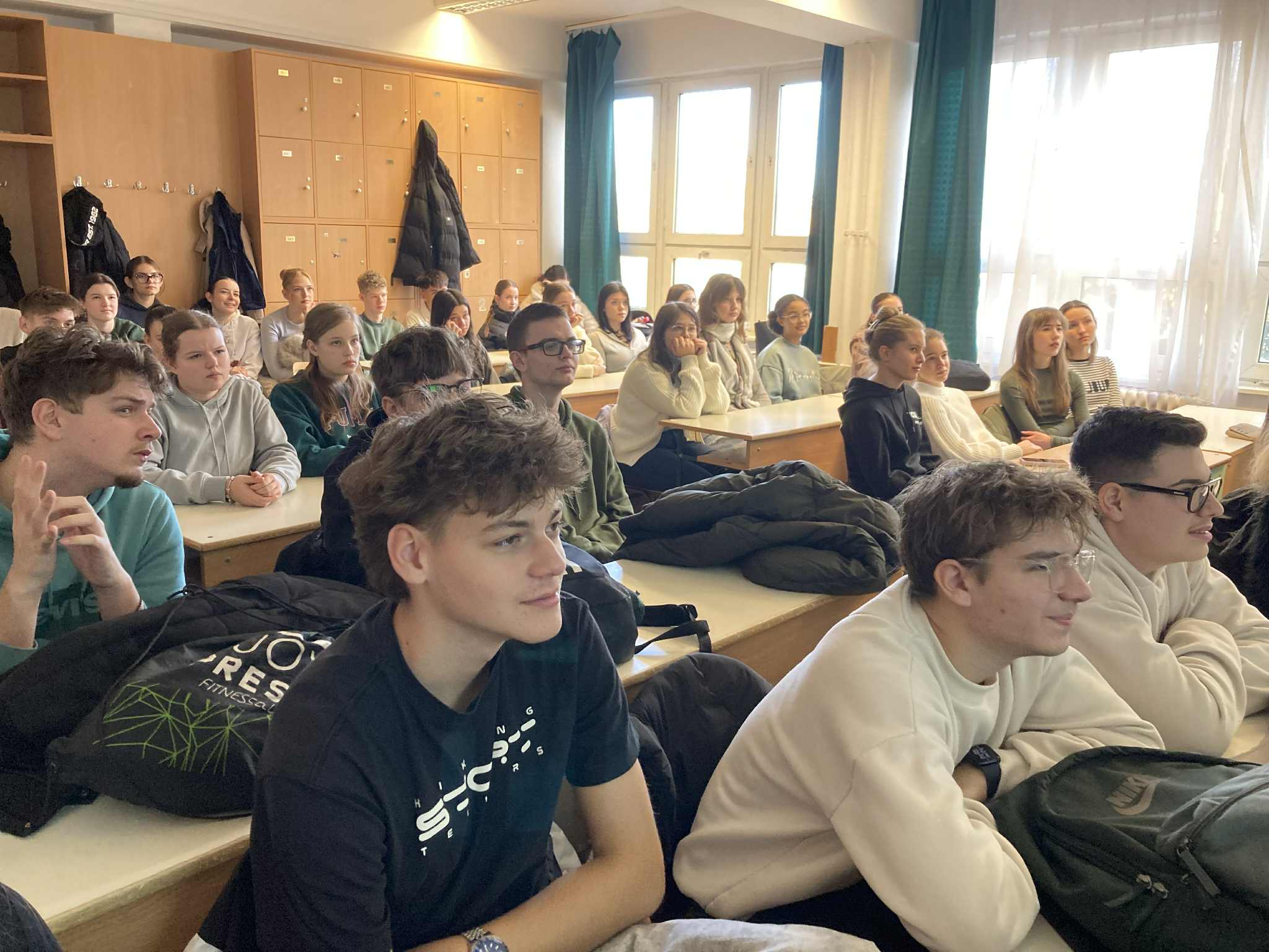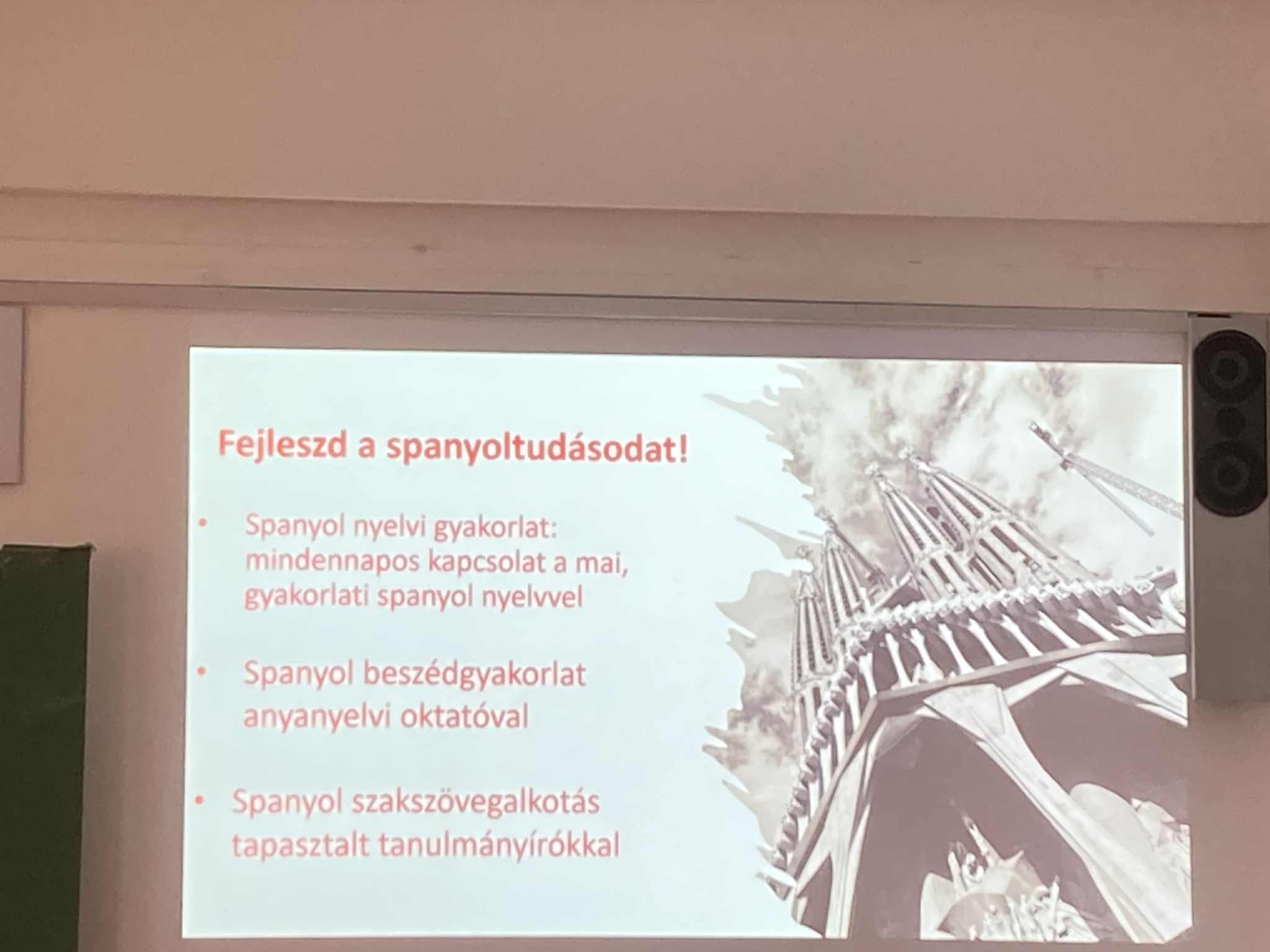 A pályaorientációs hét programjaként ellátogatott iskolánkba Miguel García Vinolo és Kürthy Ádám a Debreceni Egyetem spanyol nyelvi tanszékéről. Ízelítőt kaptunk abból, hogy mit is lehet tanulni spanyol szakon, milyen a debreceni egyetemista élet, milyen ösztöndíjakkal lehet külföldön tanulni stb. Betekintést nyertünk a spanyol szavak kettős jelentésébe, vicces mémeken keresztül nyelvészkedtünk a poliszémia, homonímia stb. világában.