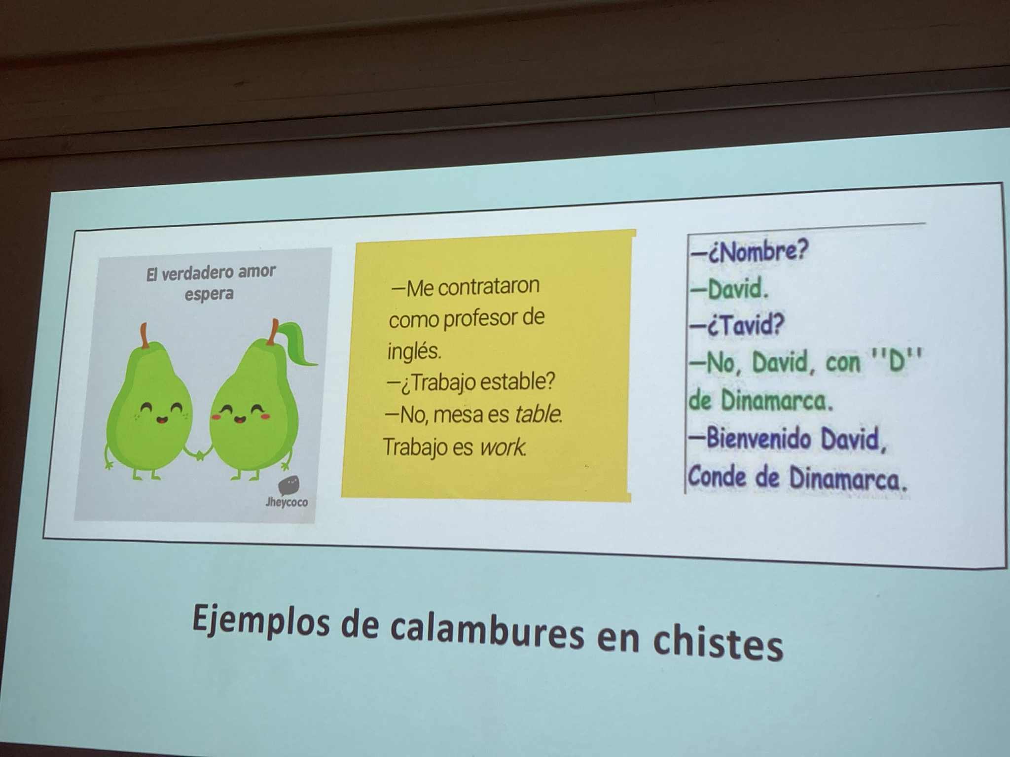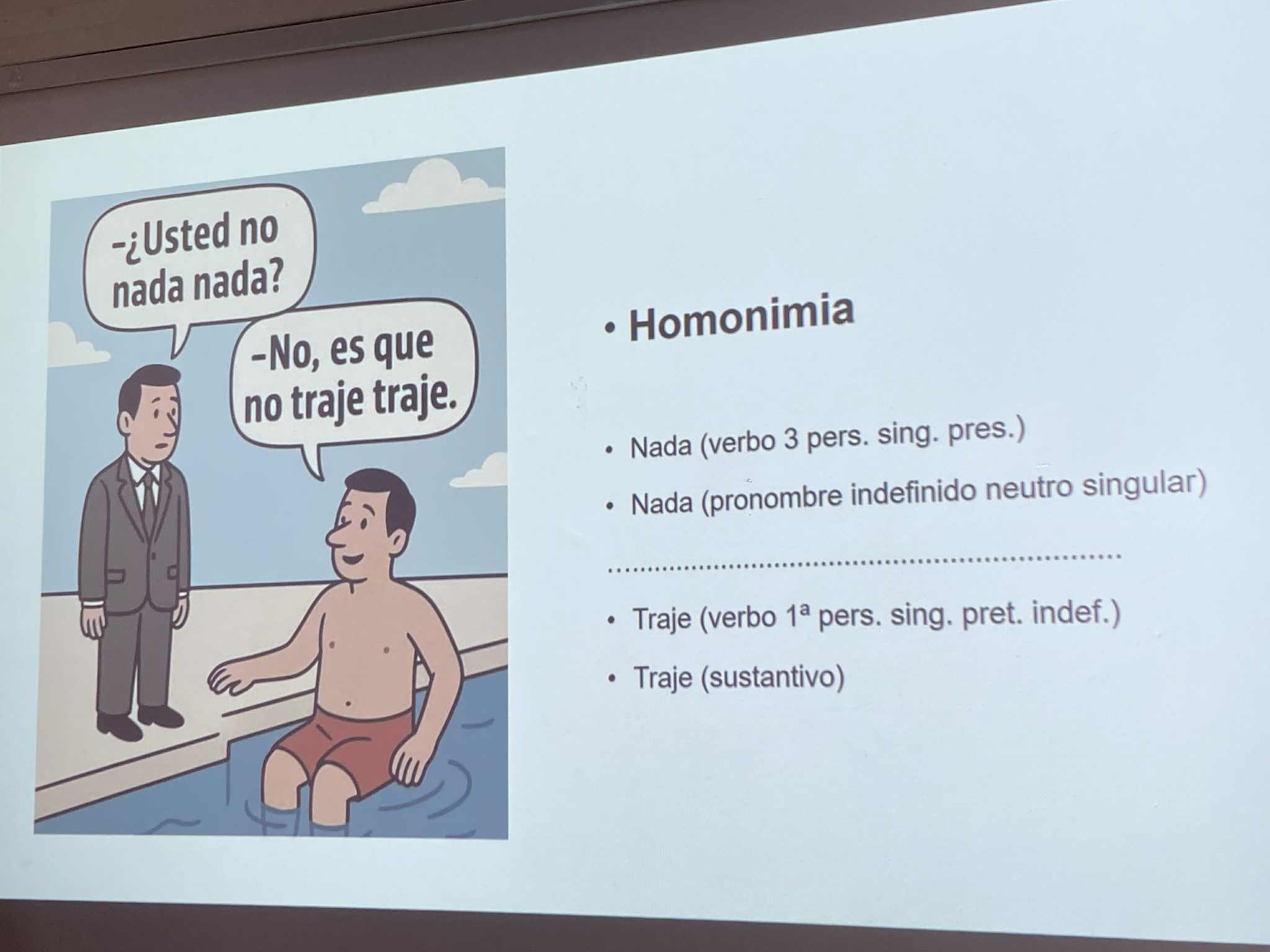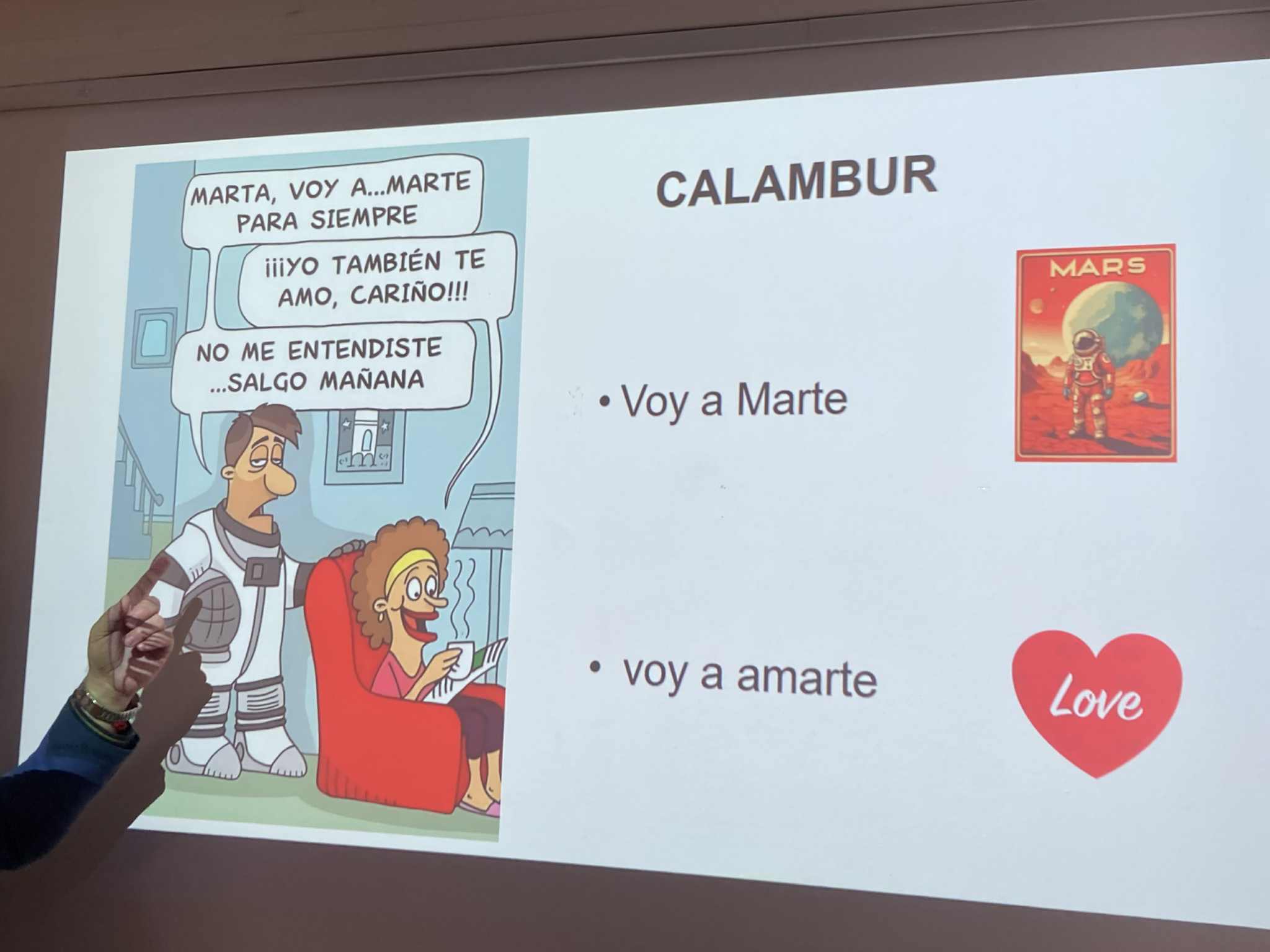 A pályaorientációs hét programjaként ellátogatott iskolánkba Miguel García Vinolo és Kürthy Ádám a Debreceni Egyetem spanyol nyelvi tanszékéről. Ízelítőt kaptunk abból, hogy mit is lehet tanulni spanyol szakon, milyen a debreceni egyetemista élet, milyen ösztöndíjakkal lehet külföldön tanulni stb. Betekintést nyertünk a spanyol szavak kettős jelentésébe, vicces mémeken keresztül nyelvészkedtünk a poliszémia, homonímia stb. világában.