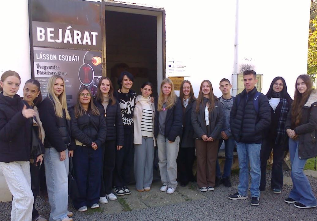 Tanulmányi kirándulás keretében látogattunk el Parádsasvárra a 10.d biológia-kémia tagozatos tanulókkal. A Csevice-forrás és palackozó üzem volt az első állomásunk, melynek elődjét közel 200 éve hozták létre. A Parádsasvári Üvegmanufaktúrában bepillantást kaptunk a kézi üvegfújási, formázási technikákba, az üveg különleges tulajdonságait mutatták be nekünk. Az üveg készítésének lépéseit is láthattuk, mely nagy szakértelmet és több éves tapasztalatot igényel. Fotolumineszkáló pigmentek beépítésével például kék és zöld színben világító üvegtárgyakat is készítettek, melyeknek széles választékából lehetőségünk volt vásárolni is.